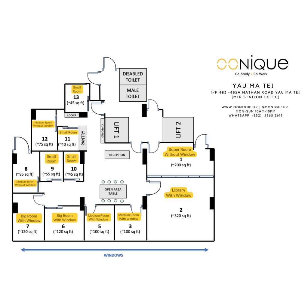 LIBRARY議室是320呎,可容納25-30位 (無限制會議室的使用人數 - 只是建議的使用人數。會議室內已設有白板(免費)。
